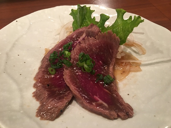 『武田屋』で野毛通手形1枚、生ビールにお通しに牛たたき。
